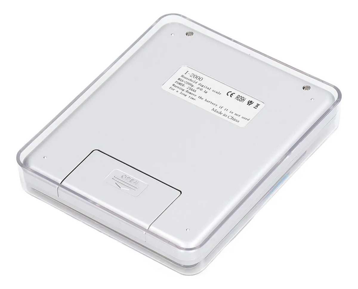 Un amplio rango de escala de 1g hasta 2000g e incluye dos bandejas transparentes y un manual de instrucciones Freatures funcion de cada opcion de cuatro unidades G oz ozt dwt indicador de bateria baja 2 pilas AAA no incluidas plato de acero inoxidable Azul retroiluminacion y apagado automatico despues de 60secs Ideal para cocinar en la cocina polvos hierbas y jewllwey Disfrutar de la comodidad del tama o de bolsillo con un gran sopesar rango Precision de 0 1g y capacidad de 2000 gramos
